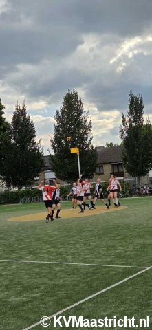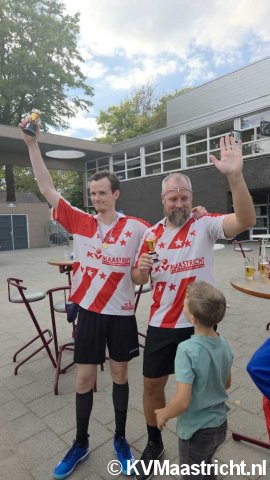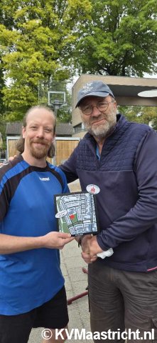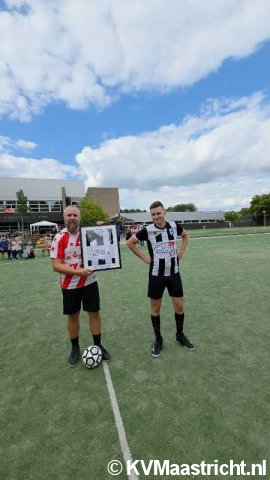 Het sportieve deel van de middag werd afgesloten met een leuke en attractieve wedstrijd tussen KV Maastricht 1 en Zwart-Wit uit Delden. Mooie acties, sportieve sfeer en veel respect tussen de teams. Zwart-Wit verraste ons bovendien met een prachtig cadeau: een ingelijst shirt én een wedstrijdbal. En alsof dat nog niet genoeg was, kregen we van Kees de Vink een uniek 3D-portret van ons veld, de kantine en de omgeving. Mooie cadeaus die zeker een ereplekje krijgen in onze kantine!